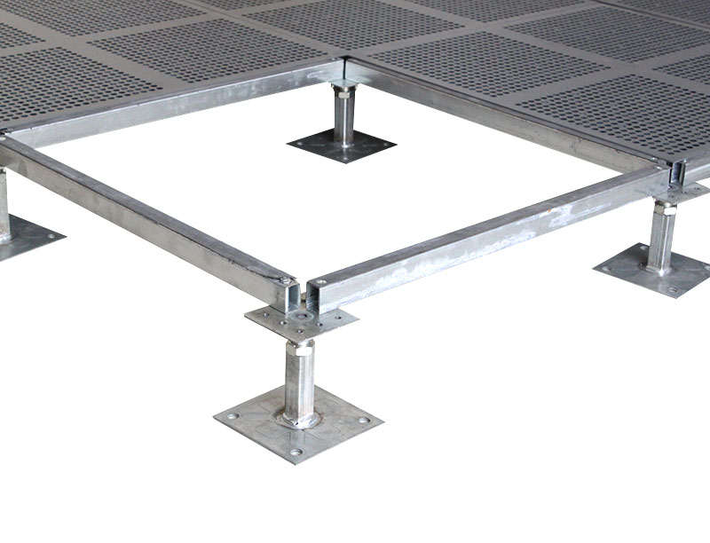 全鋼組成,表面采用HPL或者PVC沖孔貼面,面板選用SPCC硬質鋼板,高壓沖孔結構,四周導電嵌條鑲邊,支架橫梁選用鋼材模壓成型,螺桿高度可調節。